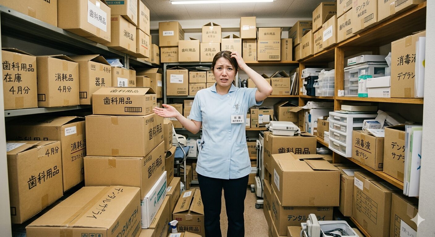 中を開けてみると、数ヶ月先まで使い切れないペーパータオルや、在庫しすぎた印象材——。