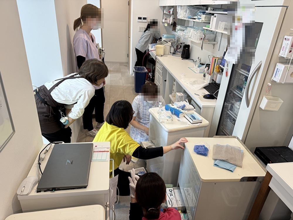 限られたスペースの中で、診療・準備・片付け・在庫管理が同時進行し、複数のスタッフが入れ替わりながら動きます。