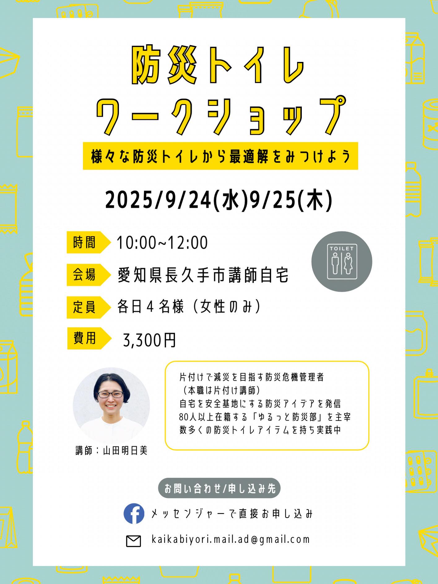 この開発した防災トイレと私が経験した一次情報満載の内容を講師自宅で開催します。