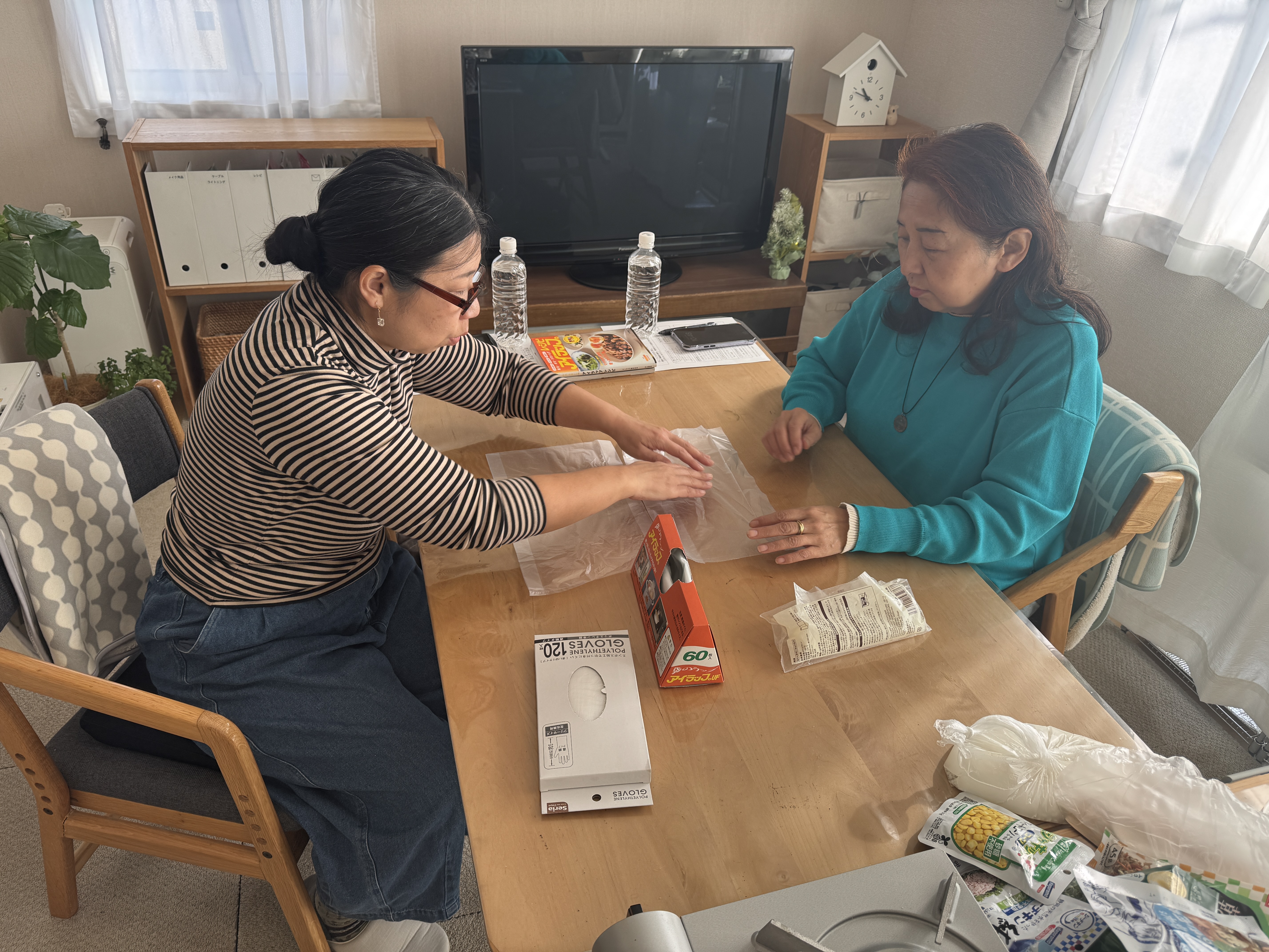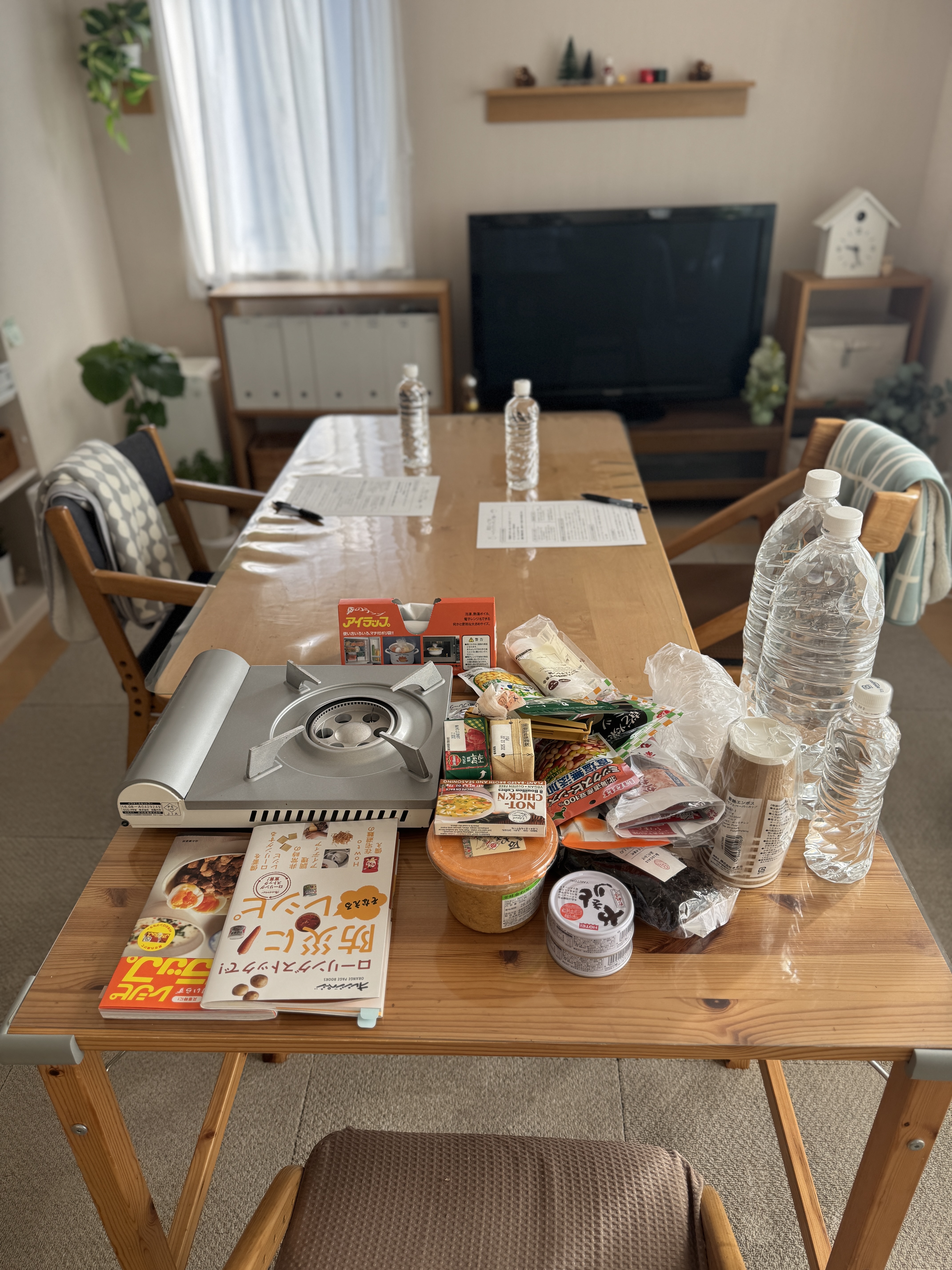 ライフラインがすべて止まっている状況での調理を行うため、ガスはカセットコンロ、水はペットボトルを使用。