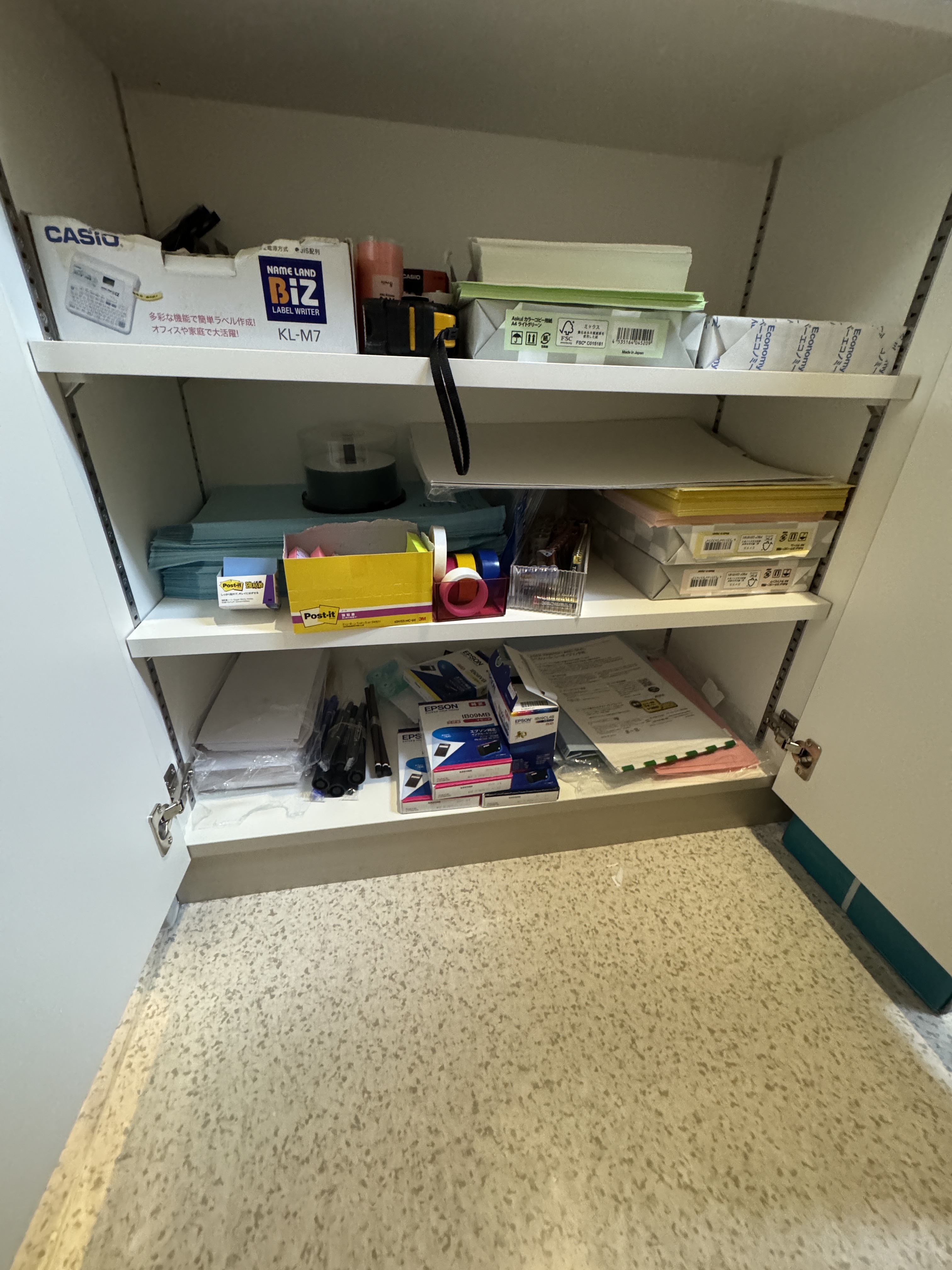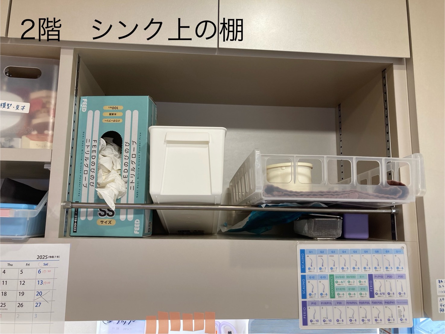 使用物品を整理したことで、棚を一段はずし、在庫置き場に。