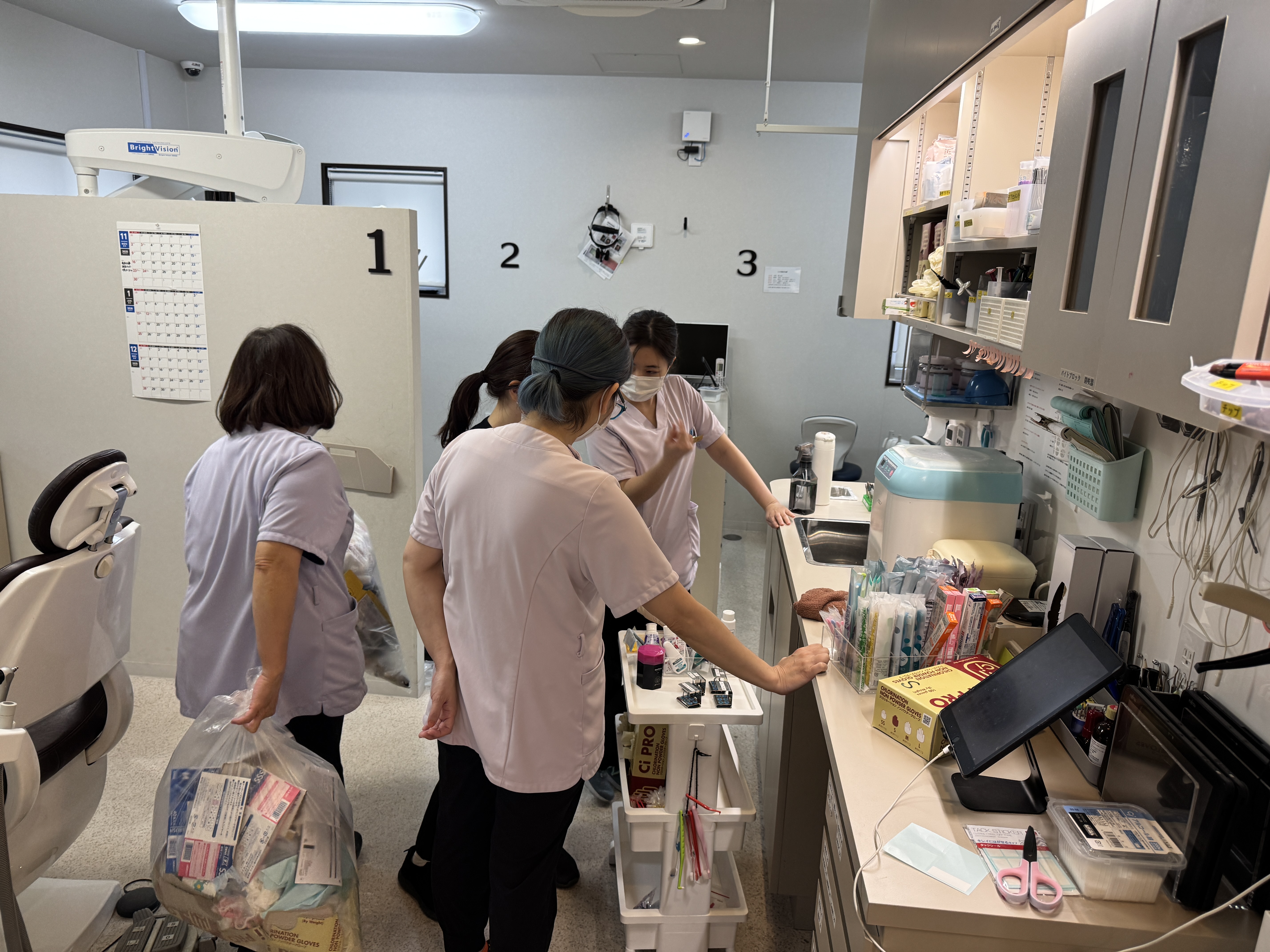 今回は「受付」「1階診察室」「2階診察室」「技工室」「手術も行う診察室」をそれぞれに分かれて片づけることになりました。