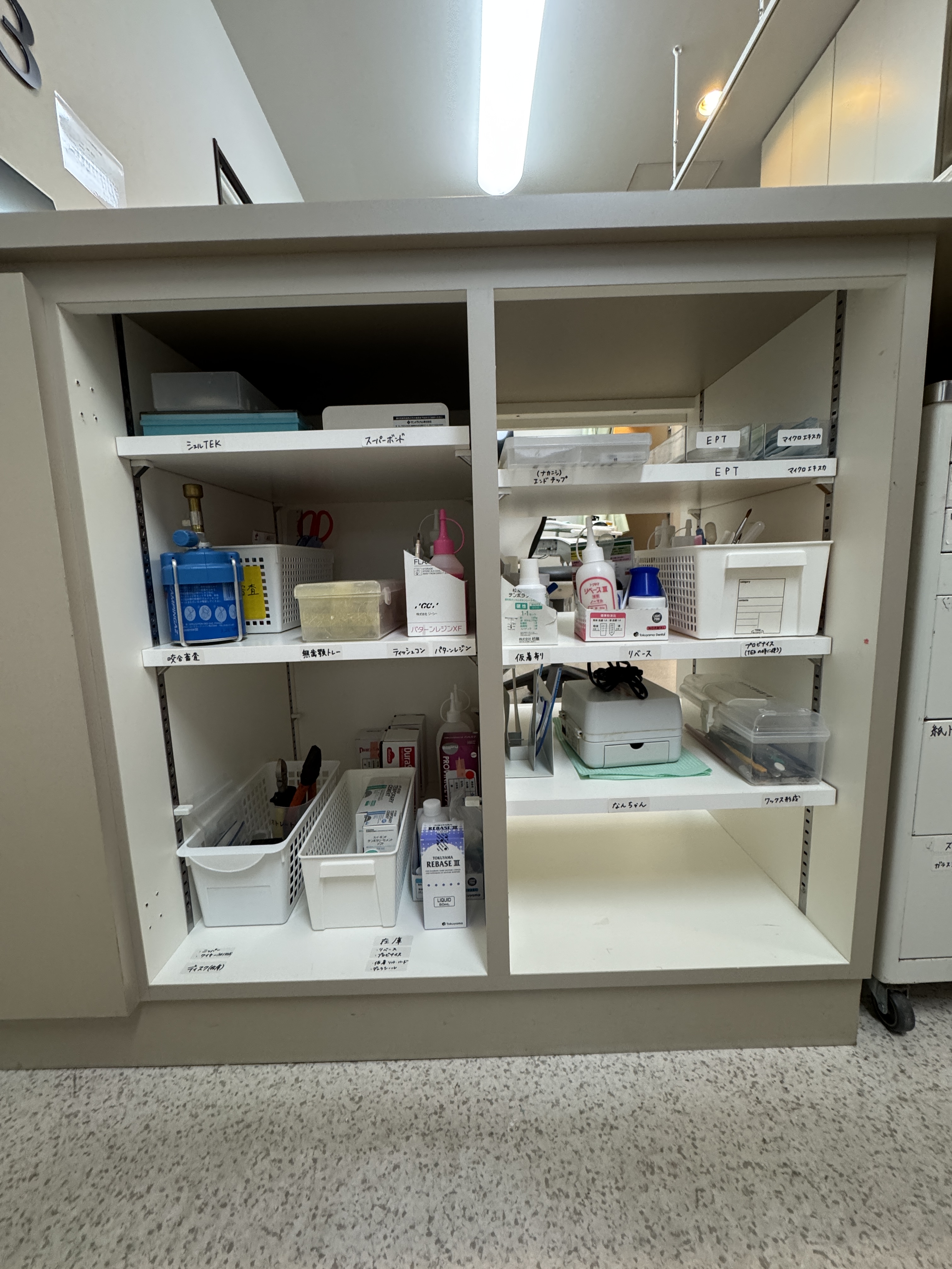 院長メインで使う場所は、院長自ら厳選し収納。ラベリングもバッチリ!