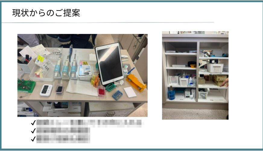 先生とスタッフさん全員がより安心安全に働きやすい環境になるよう、片付け研修と実際の片付け作業をフォローするサービスです。