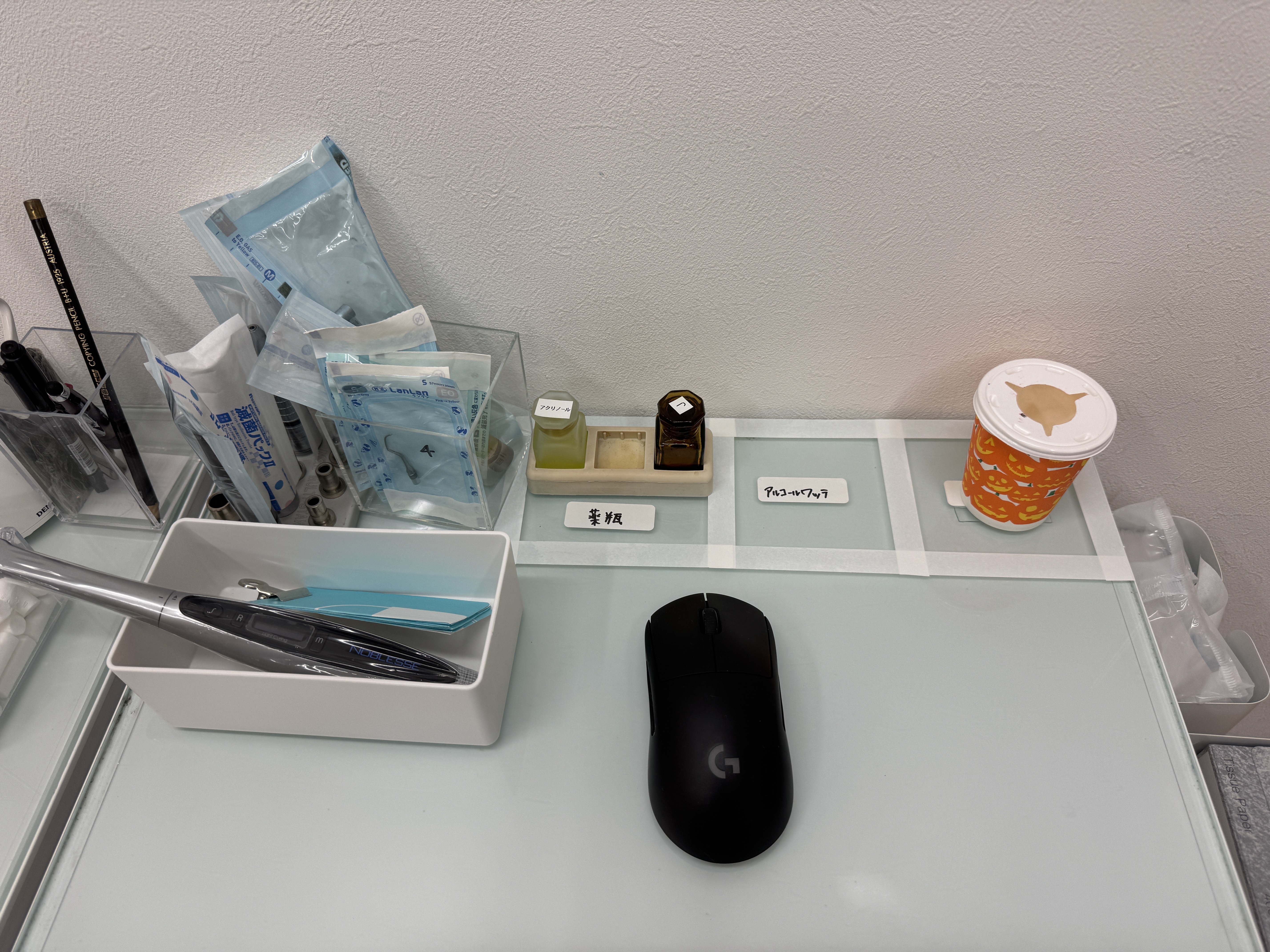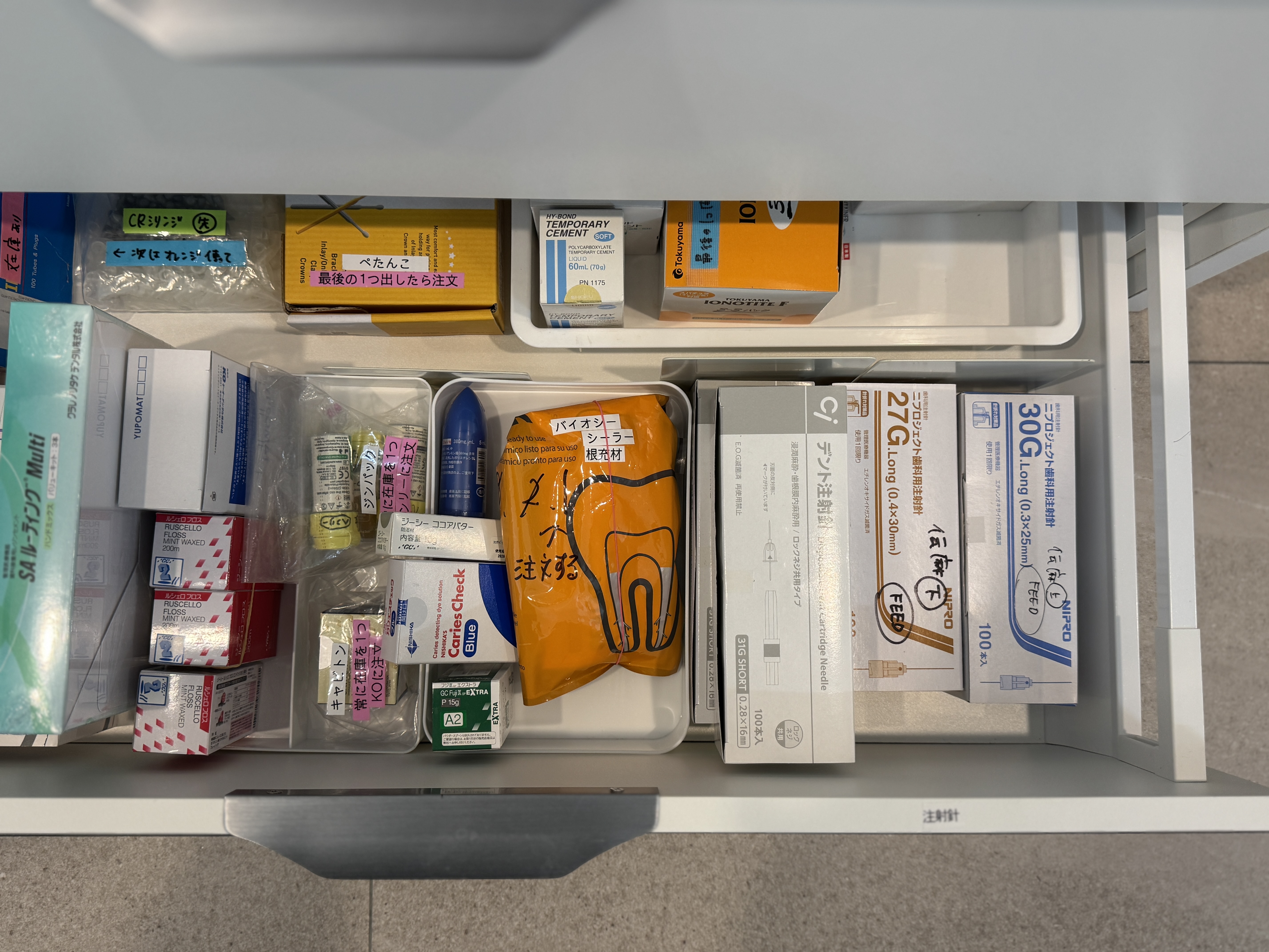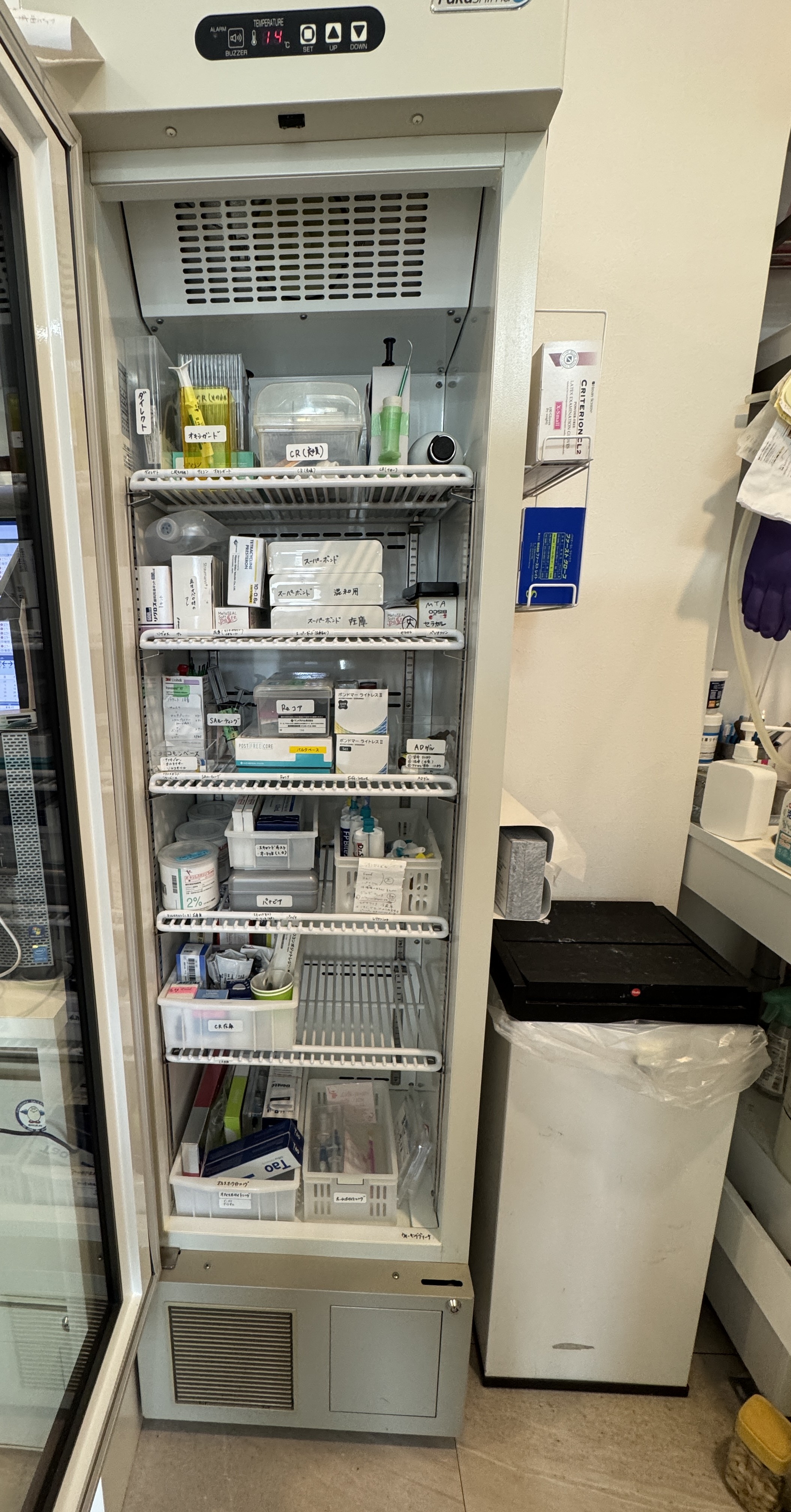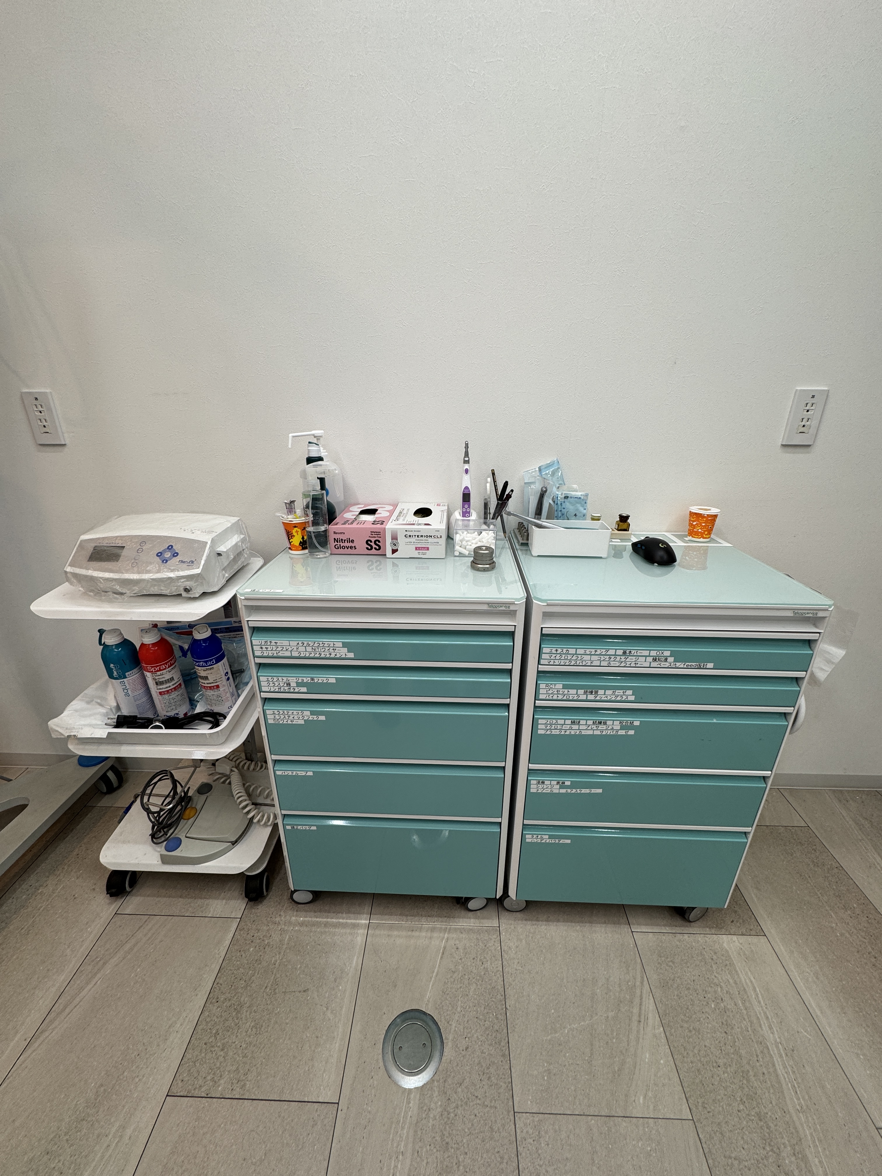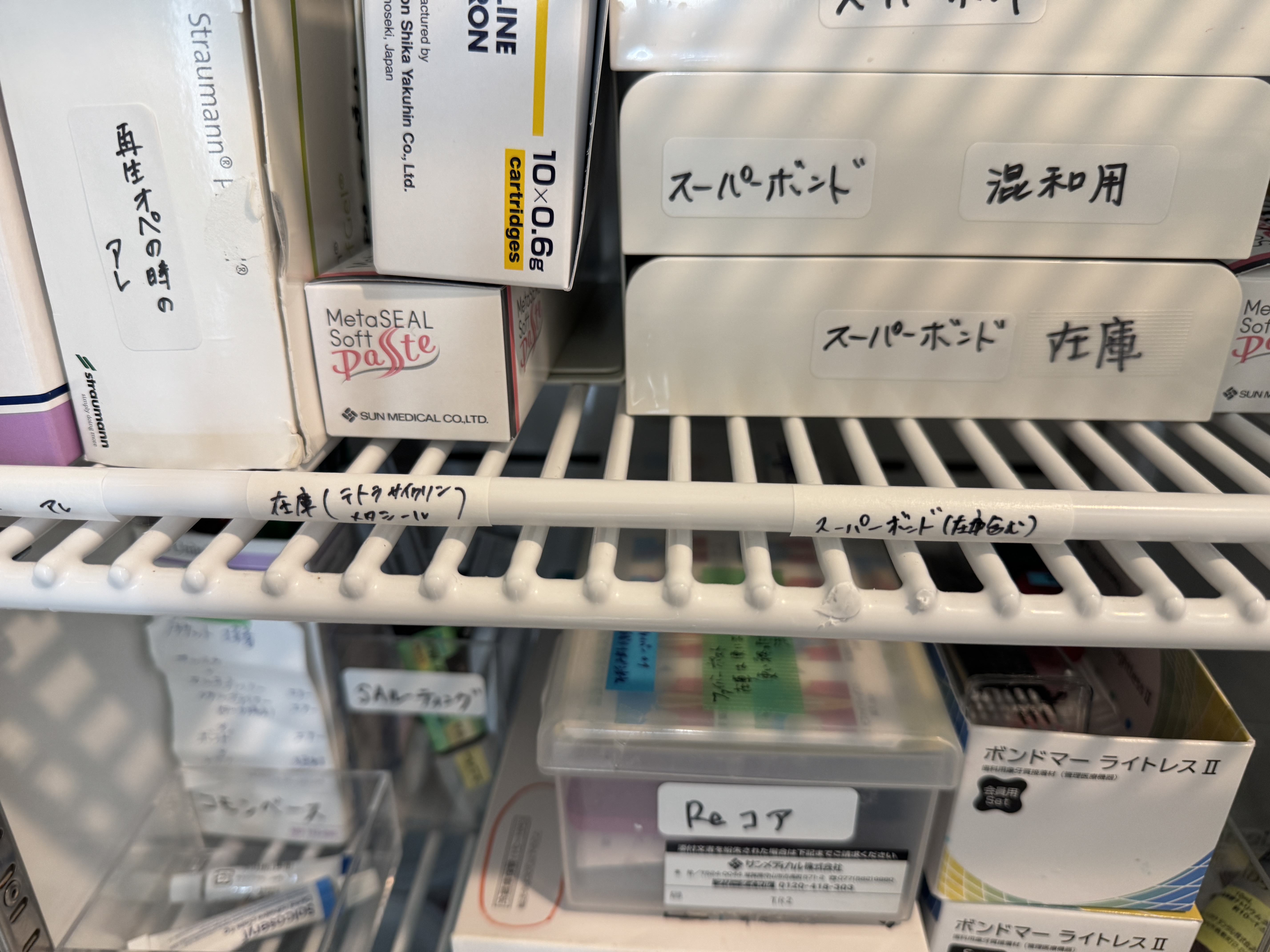 診療で使うもの、使用頻度でそれぞれ収められています。
